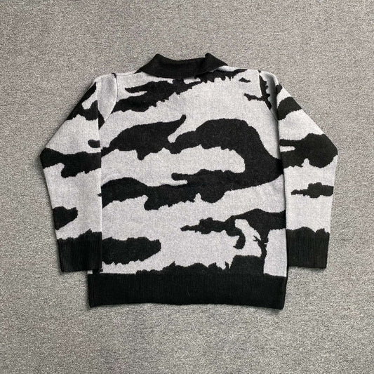 [New] Corteiz Fuzzy Mohair Collar Sweater 'Black Camo'